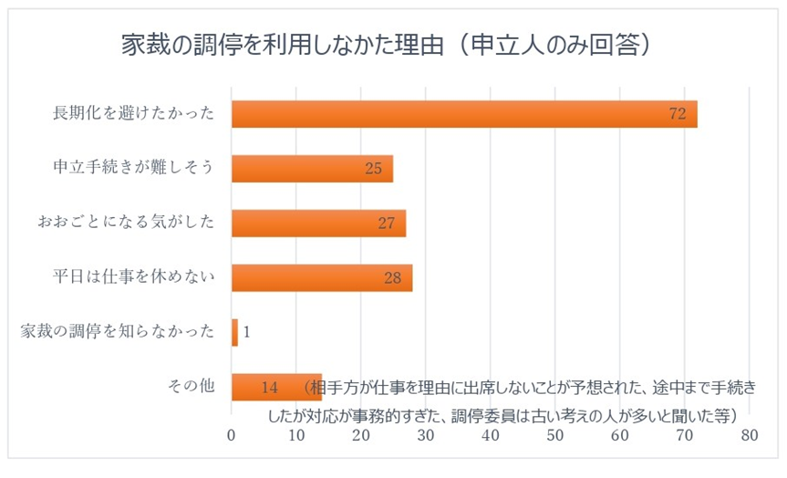 このことから、申立人は、相手の気持ちを聞きたいというより、自分の気持ちを伝えたいという思いが強いことが分かります。そのため、「言っても聞いてもらえない」という気持ちから申し立てる申立人が多いのではないかと思われます。