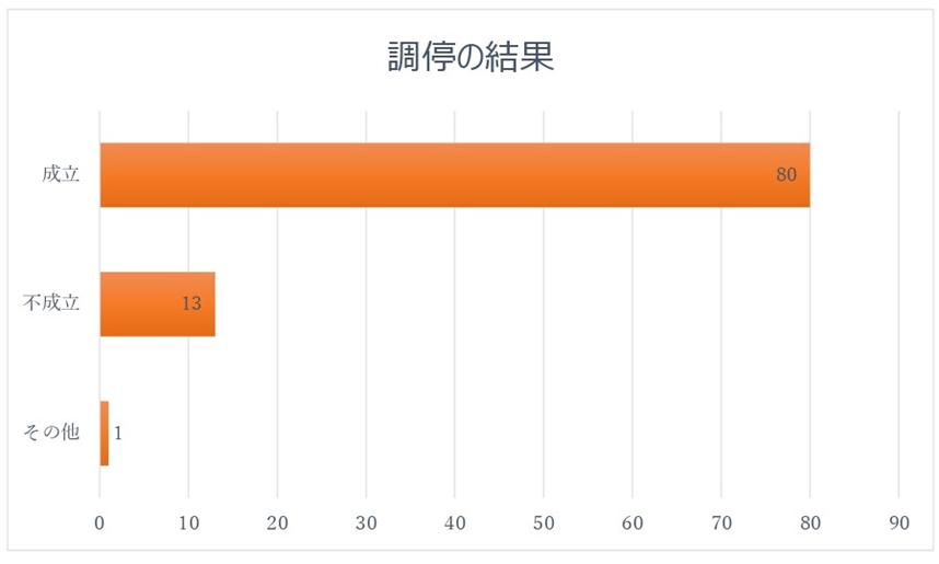 一方で、同席調停の方が効率的に合意形成できることから、成立率に差が出たと考えられますが、同席調停ができる当事者は別席調停を希望する当事者に比べ、紛争性が低いことも成立率の違いに影響を与えていると考えられます。
